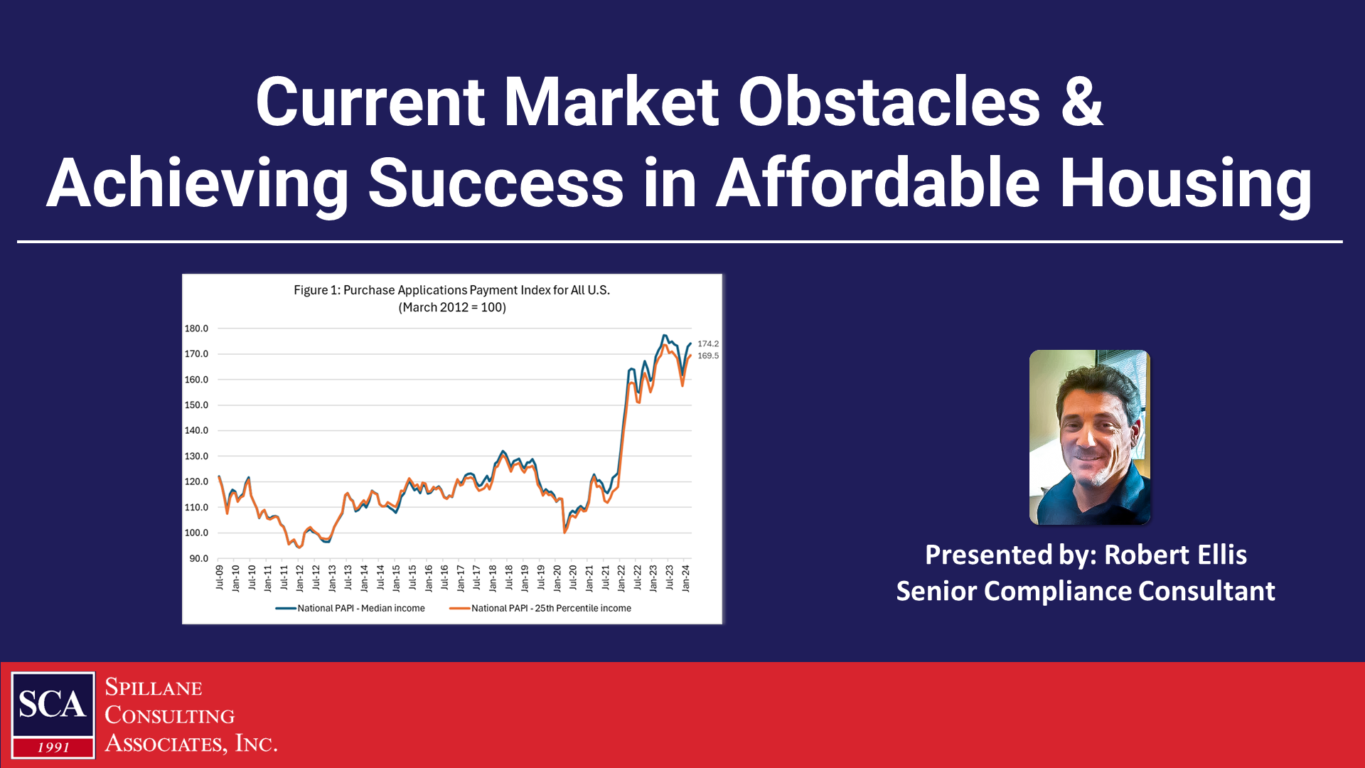 SCA's Senior Compliance Consultant Robert Ellis presents a guided look at Affordable Housing and the current market challenges lenders face in addressing these needs. Follow this link to access the presentation on our company YouTube page!